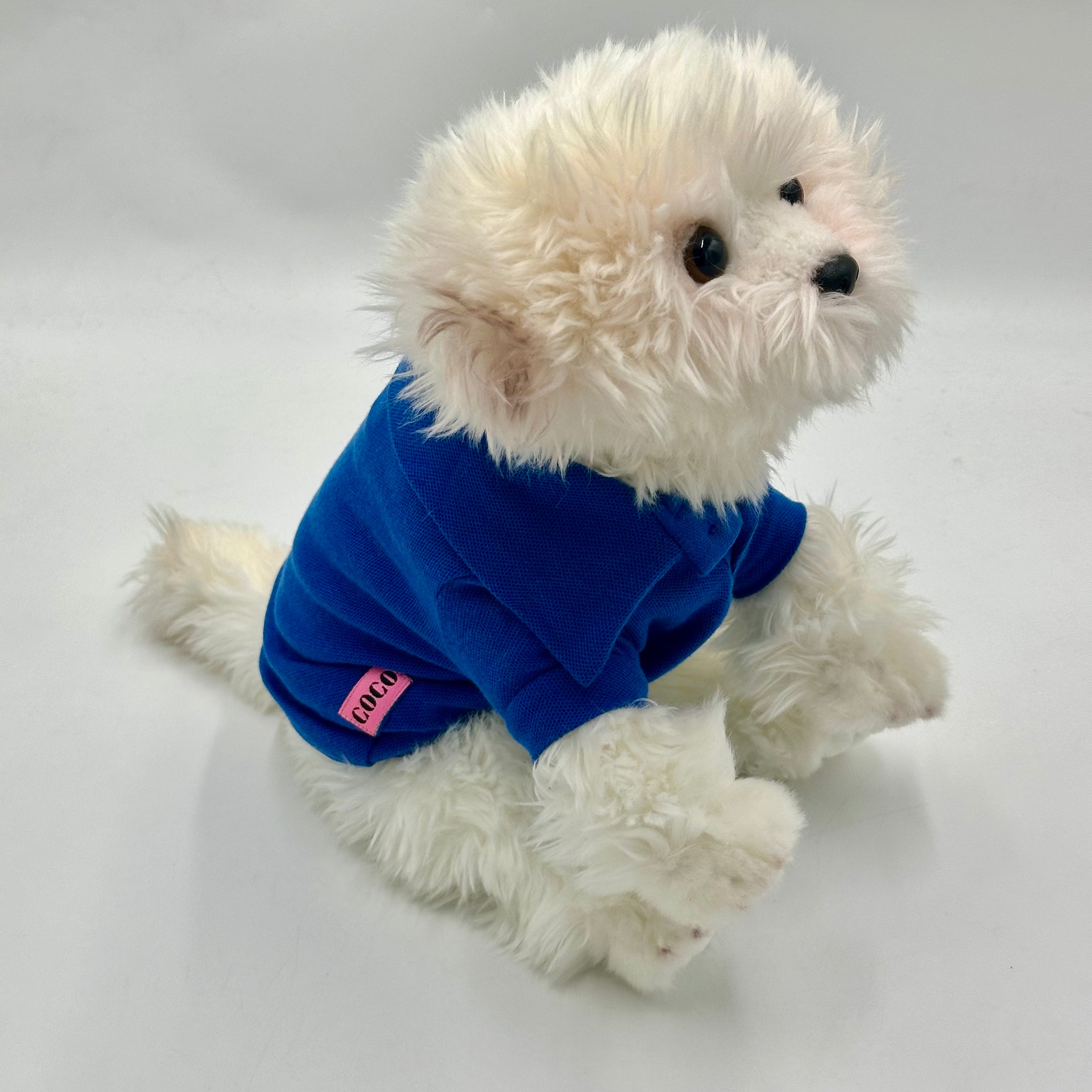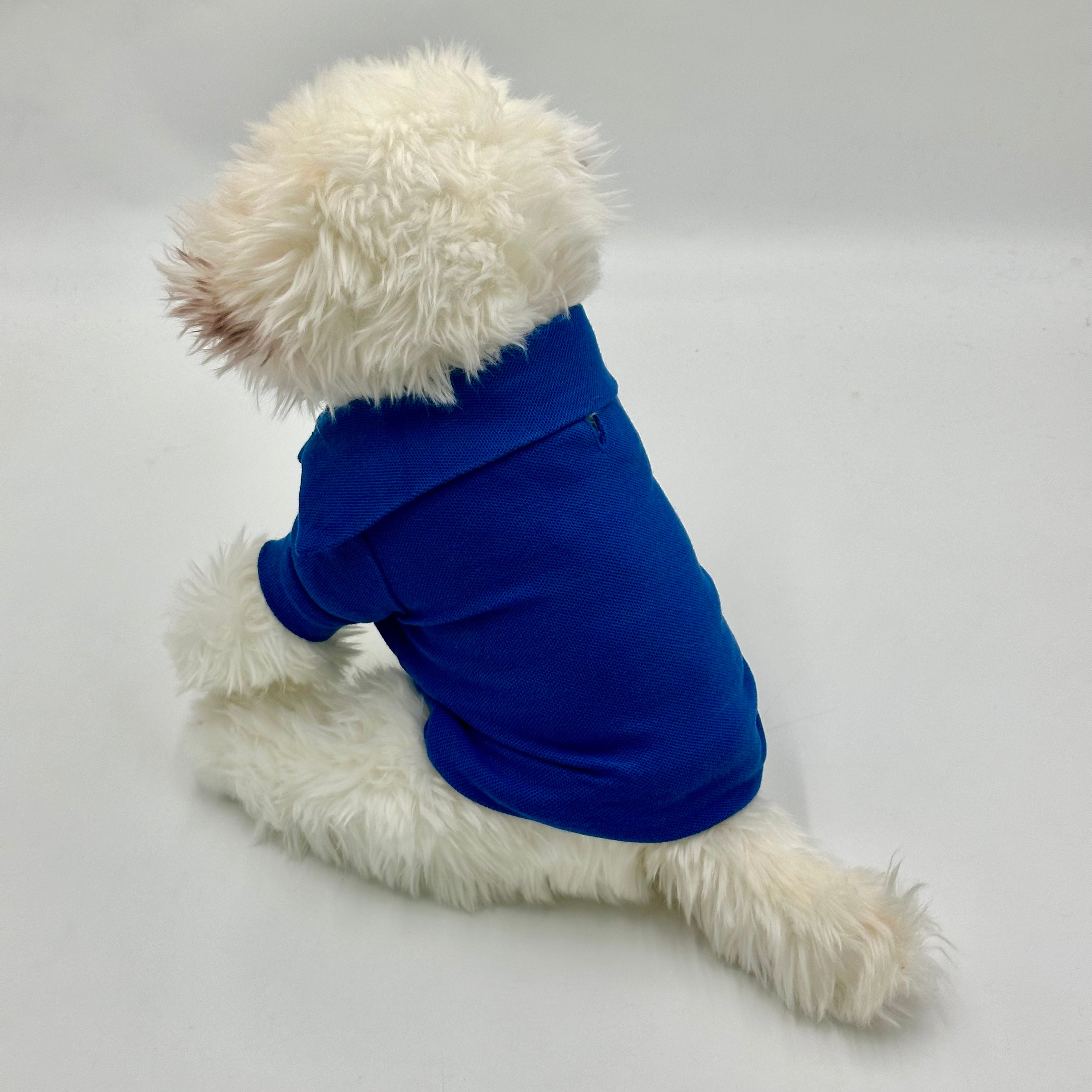 Classic royal blue pet polo shirt with a ribbed collar and short sleeves, offering a comfortable and stylish look