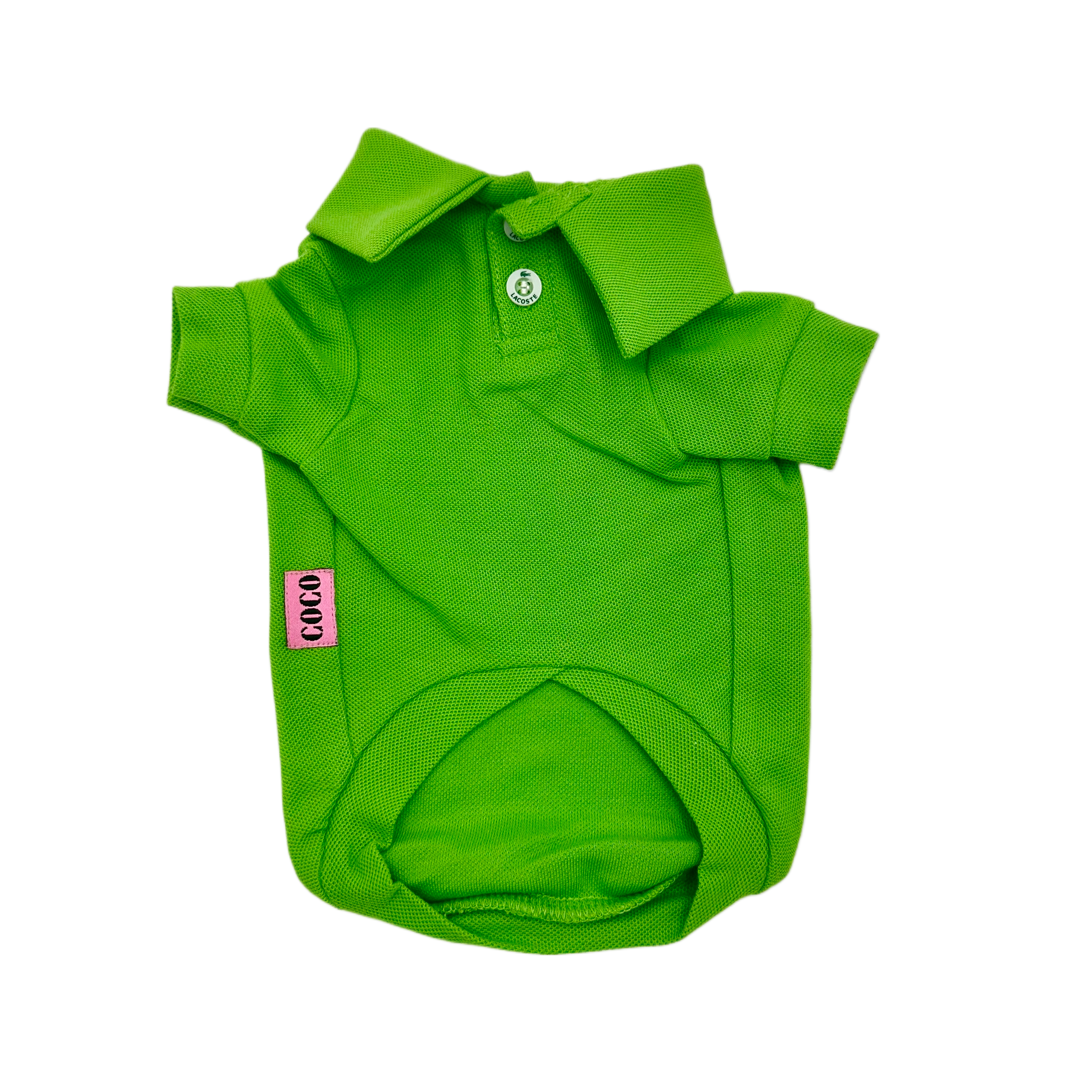 Classic green pet polo shirt with a ribbed collar and short sleeves, offering a comfortable and stylish look