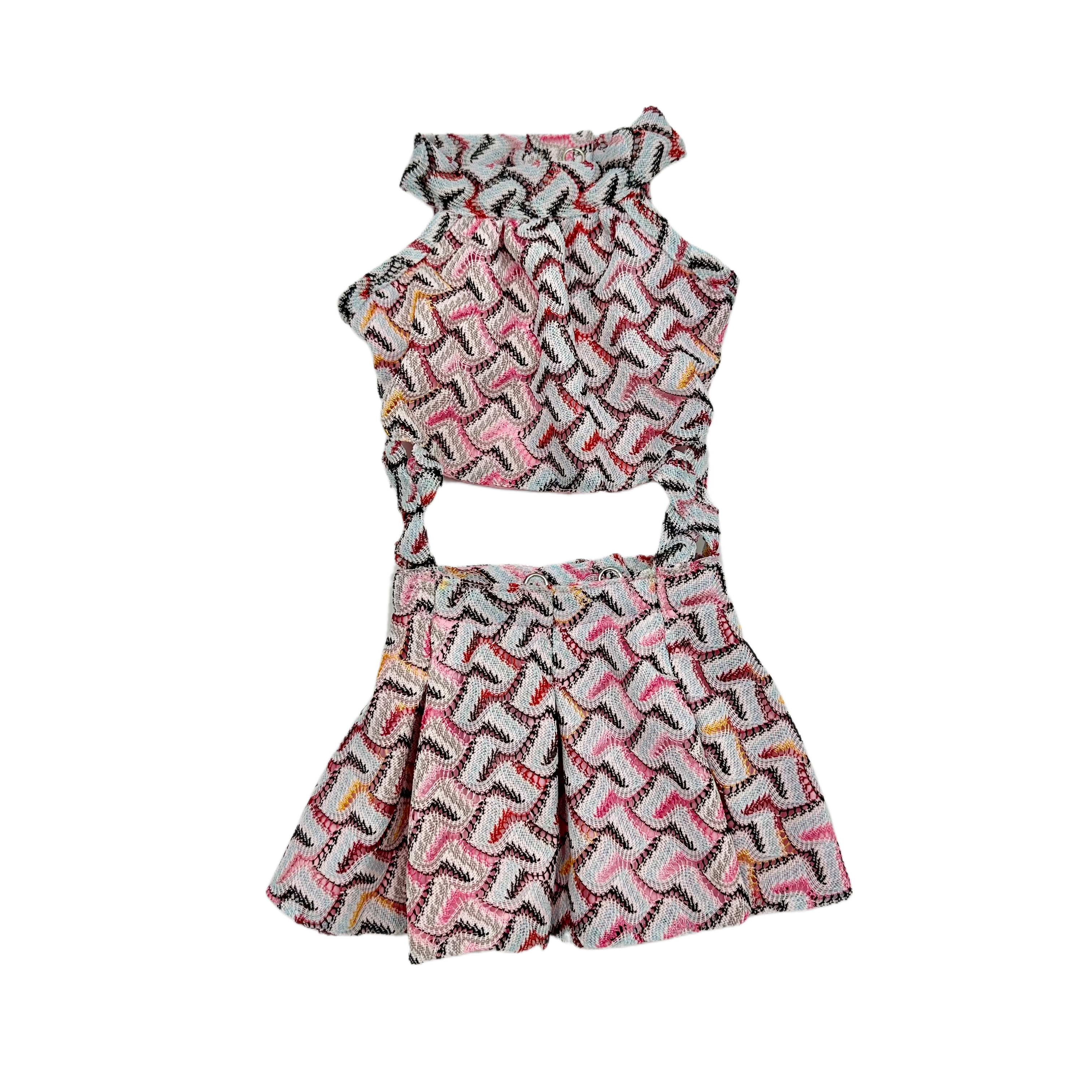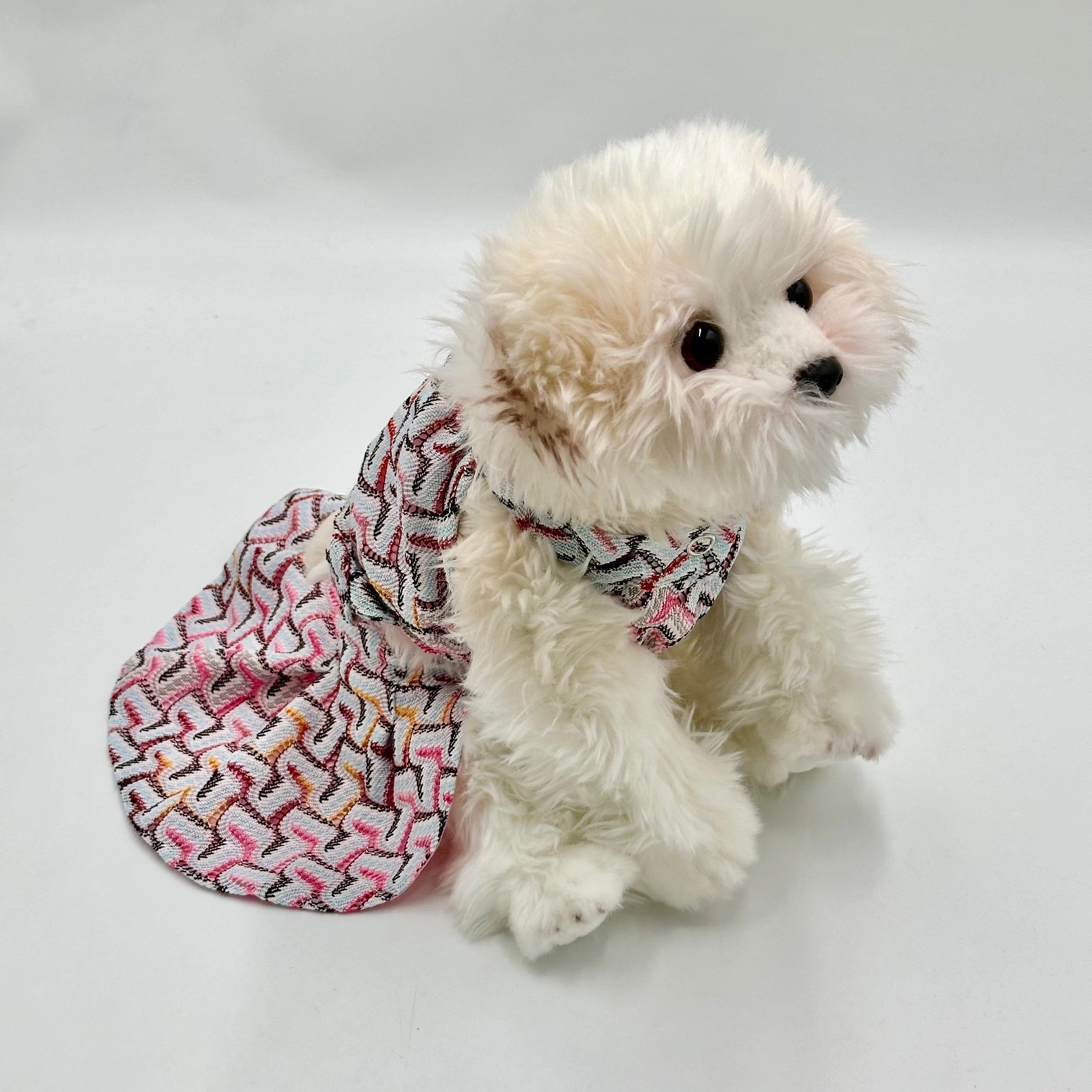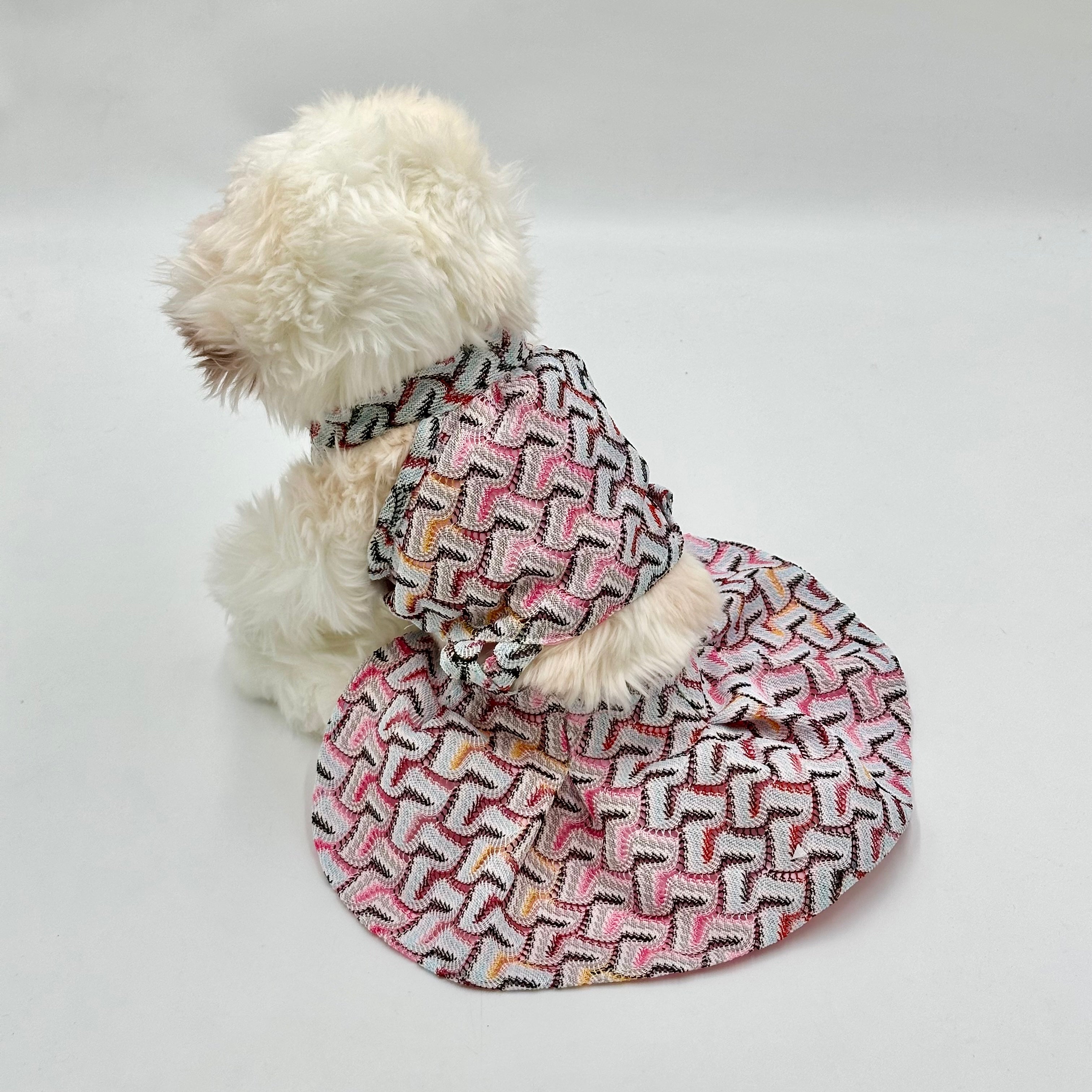 Colorful pet jumper dress with a textured zigzag pattern, a halter neck and an open back, perfect for summer